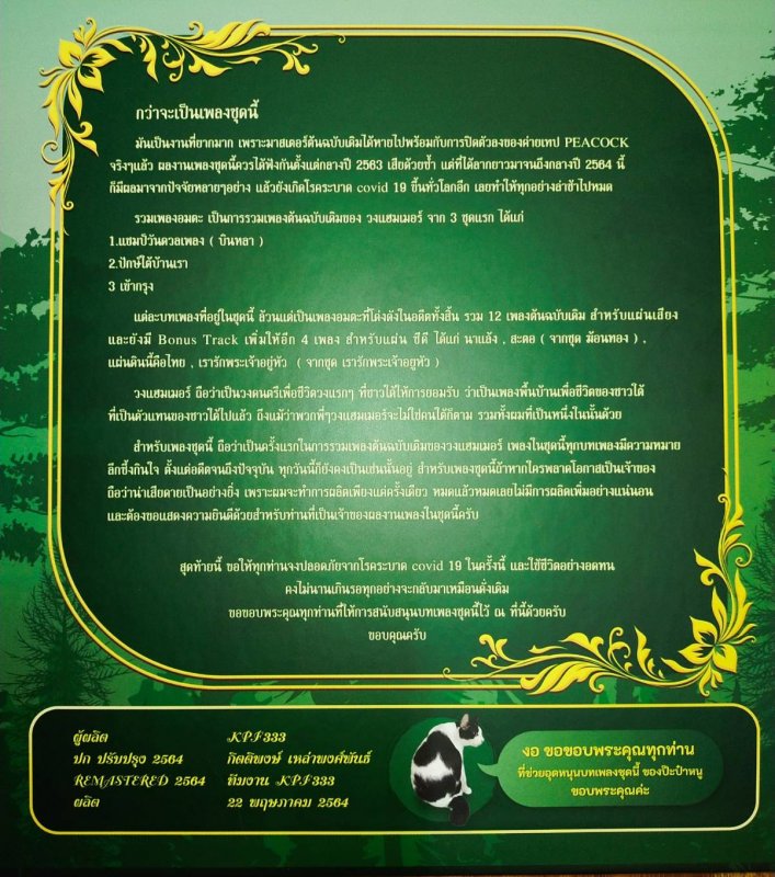 1.ขายแผ่นเสียงของ แฮมเมอร์ ชุด รวมเพลงอมตะ แผ่นผลิต Made in Germany จำนวนการผลิต 500 แผ่น ทุกแผ่นระบุหมายเลขการผลิต เป็นครั้งแรกในการรวมเพลงต้นฉบับเดิม จาก 3 ชุดแรก ของ วงแฮมเมอร์ และ ได้ปรับปรุงคุณภาพเสียงให้ดีขึ้นกว่าเดิมอย่างเต็มรูปแบบ ปกเคลือบกันน้ำอย่างดี พร้อมลายเซ็นต์ปก ครบวง ( แผ่นใหม่แกะซีลเซ็นต์ปก จำนวนจำกัด มาก่อนได้ก่อน ) ราคา 2,300 บาท