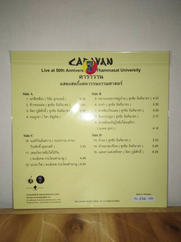 3.ขายแผ่นเสียงของ ฅาราวาน ชุด แสดงสดกึ่งศตวรรษธรรมศาสตร์ ผลิตเป็นครั้งแรกในรูปแบบแผ่นเสียง แผ่นผลิต Made in Germany จำนวนการผลิต 333 ชุด ( 1ชุด มี 2 แผ่น ) ทุกชุดระบุหมายเลขการผลิต ต้นฉบับจาก Master Tape Real และได้ปรับปรุงคุณภาพเสียงให้ดีขึ้นกว่าเดิม แบบเต็มรูปแบบ ราคา 2,750 บาท