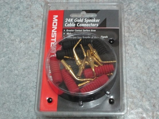 26.ขาย Monster 24K Gold Speaker Cable Connectors เป็นของใหม่พร้อมกล่อง 1 กล่อง มี 8 ตัว ( รับประกันของแท้ 100% ) แฟน Vintage ไม่ควรพลาด เหมาะสำหรับขั้ว AMP,ขั้วลำโพง แบบ ขาหนีบ ปกติราคา 1,050 บาท ลดพิเศษเหลือเพียง ราคา 900 บาท