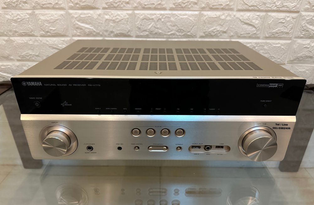ต้องการส่งต่อ Yamaha RX-V773 7.2Ch สีทอง แอมป์ดูหนังฟังเพลงจาก Yamaha ที่ให้ละเอียดเสียงที่ดี กำลังสำรองดี ใช้ได้ทั้งดูหนังและฟังเพลงหรือรับชมคอนเสิร์ต รองรับ 4K / AirPlay / HDMI ARC / 3D / Dolby TrueHD/Dolby Digital Plus/Dolby Digital/Dolby Digital EX/DTS-HD Master Audio/DTS-HD High Resolution/DTS Express/DTS/DTS-ES Matrix 6.1/DTS-ES Discrete6.1/DTS 96/24/AAC/Dolby Pro Logic/Dolby Pro Logic II และเป็นแอมป์ที่ใช้ฟังเพลงได้เพราะอีกด้วย สินค้ามีริ้วรอยจากการขนส่งและอายุการใช้งาน โดยรวมสภาพดี