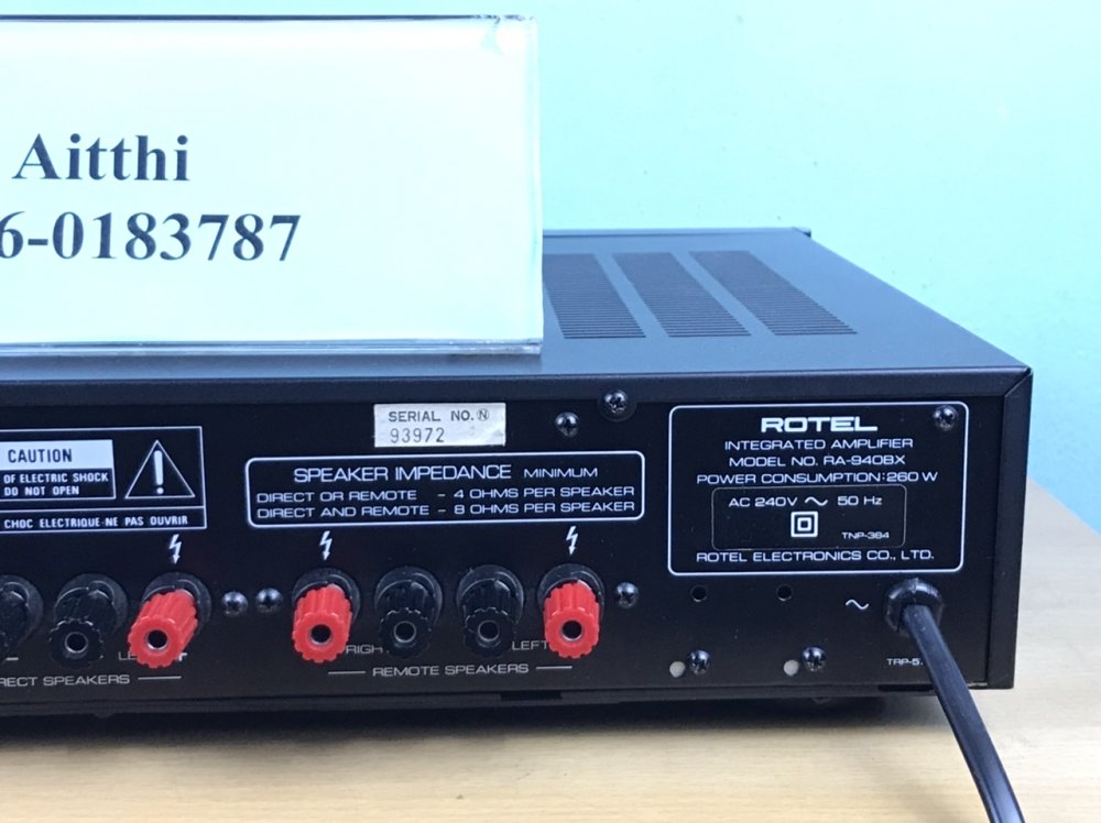 อินทิเกรตแอมป์ ROTEL RA-940BX เสียงดี แบรนด์อังกฤษ กำลังขับ 40 watts/ channel ที่ 8 ohms , กำลังสำรองดี , มี phono mm-mc , ขนาดเครื่อง 44.0x9.2x34.7 c.m. ( กxสxล) , หม้อแปลงเทอร์รอย ใช้ไฟ 220V ราคา 6,800 บาทมาทดสอบและรับของได้แถวรังสิตครับ สนใจโทร./line 066-0183787 |