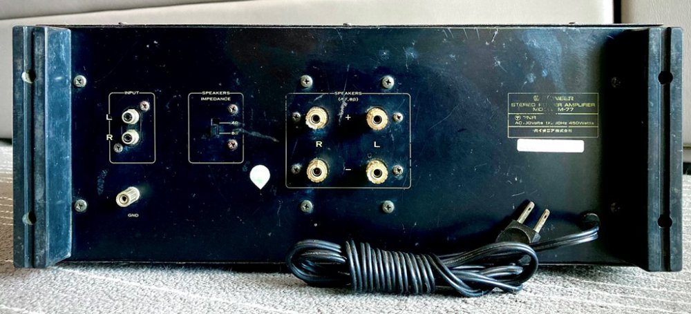 Pioneer รุ่น M-77 เป็น Power Amp รุ่นใหญ่ไฟแรง กำลังขับถึง 250 วัตต์ต่อข้าง มีเข็ม VU ด้านหน้าเครื่อง สวยคลาสสิคเสียงดี