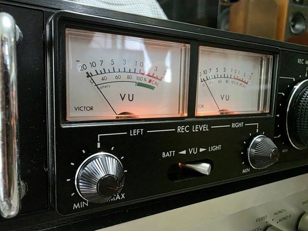 Equipped with a large VU meter.