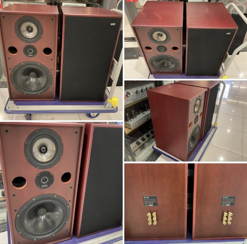 Spendor SP100 3-Ways Tri-Wire Speakers made in England ตู้ไม้สี Mahogany สวยสด วูเฟอร์ใหญ่ 13”นิ้ว แน่นๆ ใหญ่หนักอึ้งข้างละเกือบ 40กิโล เสียงหวานมาก กลางแหลมอย่างสุด ไดนามิคมาเต็ม รายละเอียดดีมาก ฟังเพลงได้ทุกแนว สภาพสวย