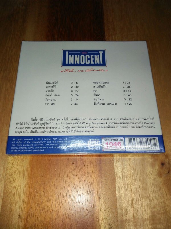 11.ขายแผ่น CD THE INNOCENT ฃุด ครั้งนี้...ของพี่กับน้อง จำนวนผลิต 2,000 แผ่น ทุกแผ่นระบุหมายเลขการผลิต ราคา 395 บาท