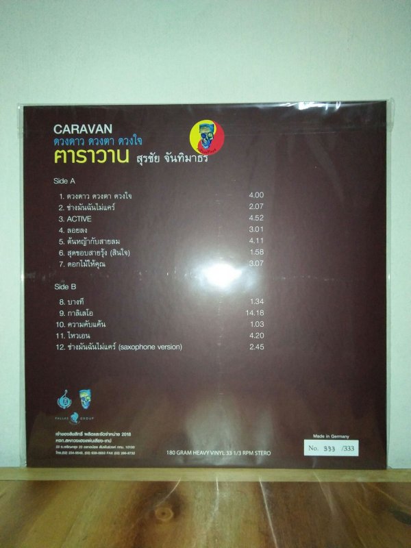 4.ขายแผ่นเสียงของ ฅาราวาน ชุด ดวงดาว ดวงตา ดวงใจ ผลิตเป็นครั้งแรกในรูปแบบแผ่นเสียง แผ่นผลิต Made in Germany จำนวนการผลิต 333 แผ่น ทุกแผ่นระบุหมายเลขการผลิต ต้นฉบับจาก Master Tape Real และได้ปรับปรุงคุณภาพเสียงให้ดีขึ้นกว่าเดิม แบบเต็มรูปแบบ ราคา 2,300 บาท