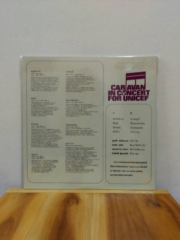 14.ขายแผ่นเสียงของ ฅาราวาน ชุด CONCERT FOR UNICEF แผ่นผลิต Made in Japan จำนวนการผลิต 500 แผ่น ราคา 3,500 บาท