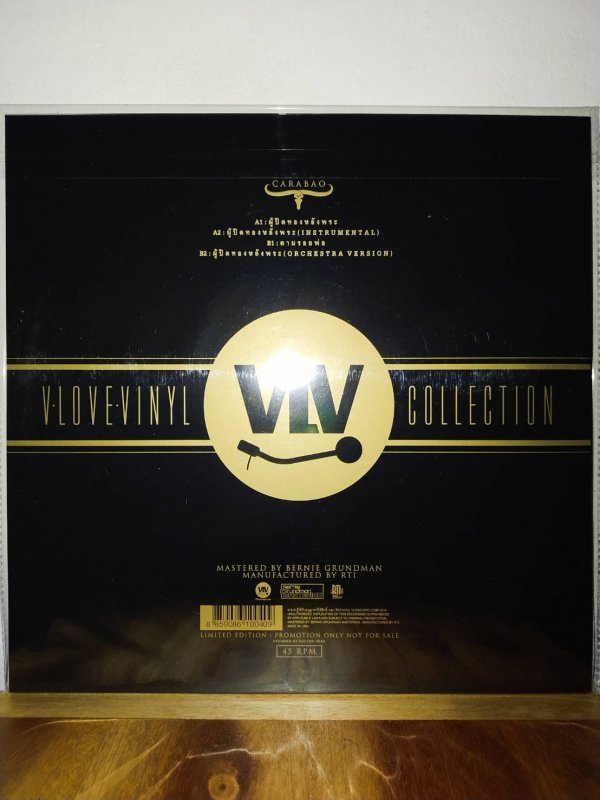26.ขายแผ่นเสียงเพลงผู้ปิดทองหลังพระ 3 Version ของ คาราบาว แผ่นผลิต RTI Made in USA แผ่น SPEED 45rpm ( แผ่นสีทอง ) ราคา 1,600 บาท
