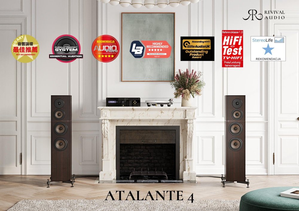 ATALANTE 4 เป็นลำโพง 3 ทาง ที่มาพร้อมกับทวีตเตอร์ซอฟต์โดม 28 มม.และเทคโนโลยีที่ได้รับสิทธิบัตร Revival Audio ARID (โดมด้านในป้องกันแสงสะท้อน) ใน ตัว ซึ่งสามารถดูดซับเสียงสะท้อนได้มากกว่า 95%