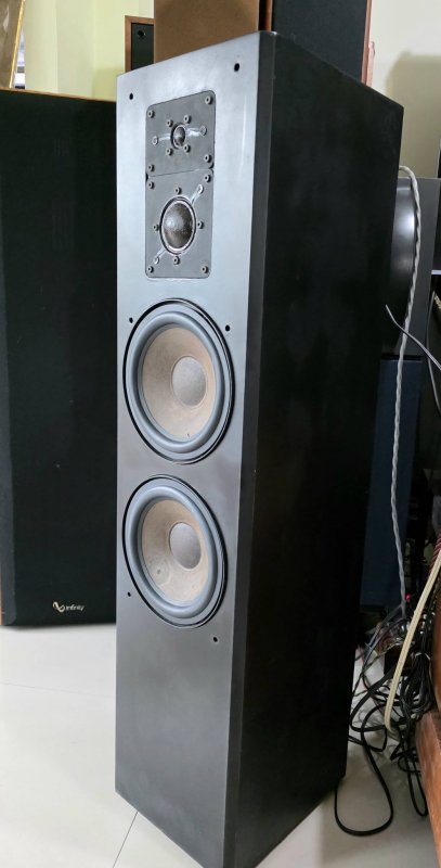 ขอบลำโพงเดิมๆสภาพดี ขอบนิ่มตอบสนองการทำงานได้เป็นอย่างดี ตัวตู้ทรงทาวเวอร์แบบวางพื้น