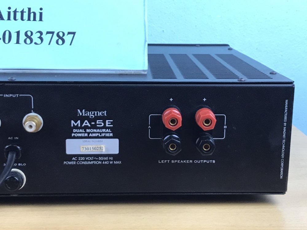 เพาเวอร์แอมป์ Magnet MA-5E เสียงดี พัฒนาจากรุ่น MA-5 ใช้งานปกติ กำลังขับ 100W + 100W ( 8ohms) ภายในสวย หม้อแปลงคู่ ใช้ไฟ 220V ราคา 8,000 บาทมาทดสอบและรับของได้แถวรังสิตครับ สนใจโทร/ line 066-0183787