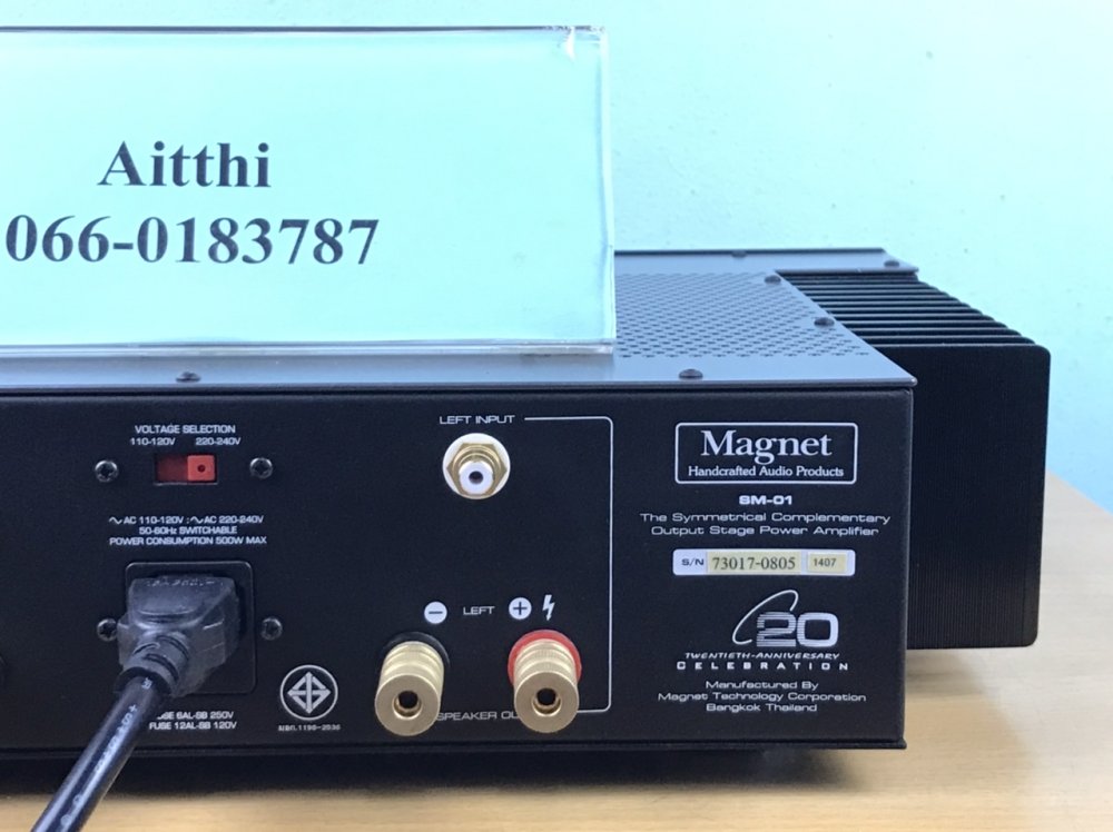 เพาเวอร์แอมป์ Magnet SM-01 เข้าใหม่ เสียงดี กำลังขับ 120 วัตต์(rms) /ข้าง ที่ 8 โอห์มใช้อุปกรณ์ระดับ Audio Grade , เครื่องเดิมๆไม่เคยซ่อม สติ๊กเกอร์รับประกันยังไม่เคยแกะ ,หม้อแปลงเทอร์ลอย ใช้ไฟ 220V ราคา 12,500 บาท มาทดสอบและรับของได้แถวรังสิตครับ สนใจโทร/line 066-0183787 |