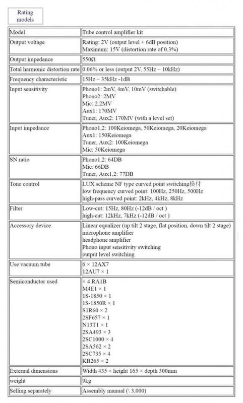 The tone control circuit uses the Lux-NF type.